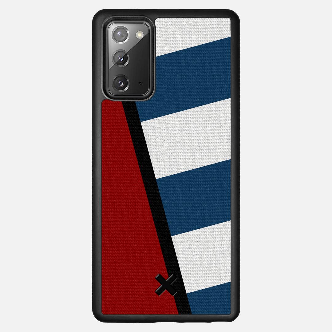 The Bluff is part of our Wayfinder Series of canvas phone cases, featuring alternating lines of blue and white, a thin dividing strip of black, and a block of bright, vibrant red. Inspired by vintage flags and maritime navigation pennants, the collection lets you to pick your own adventure marker and get out exploring the world.