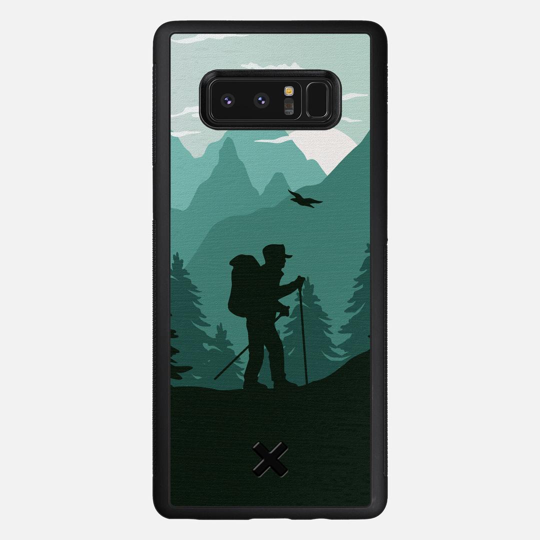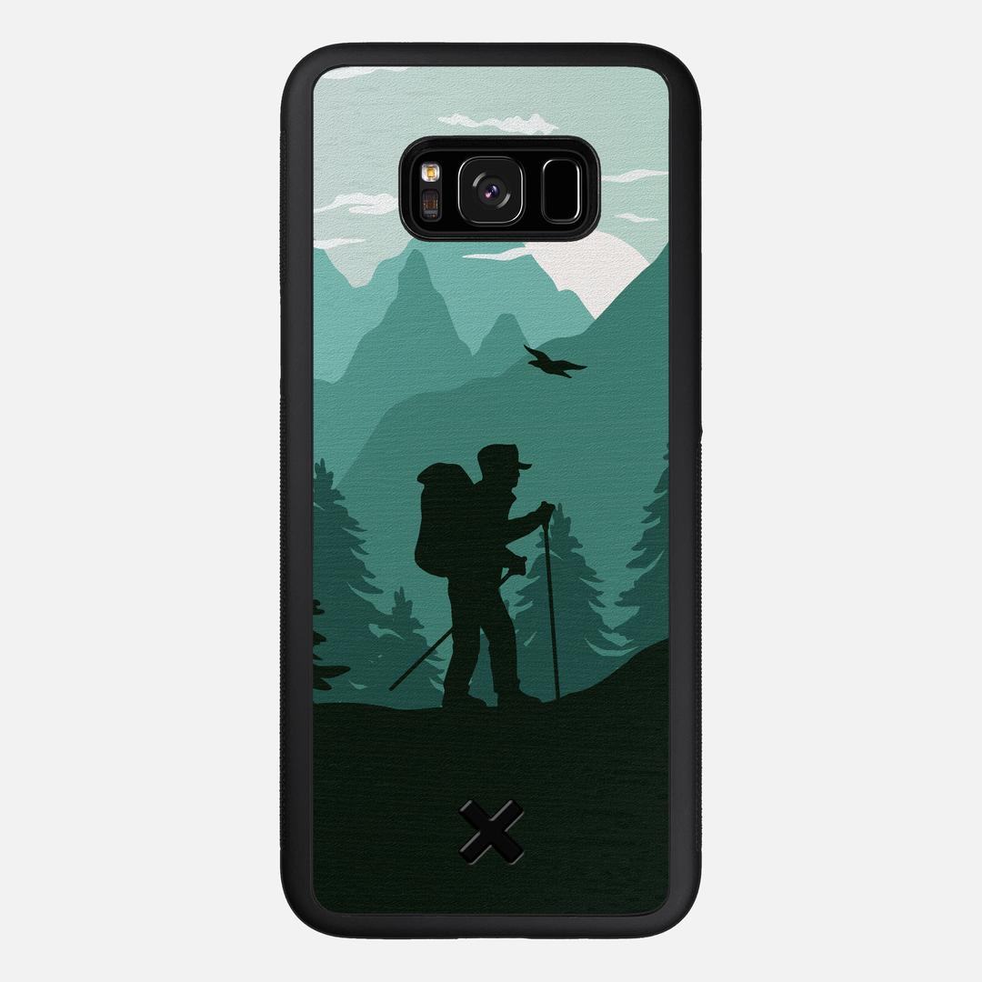 There's an explorer in all of us, but it's not every day you can go out hiking mighty mountains and tall trails. For the rest of the week, there's the Hiker. This wood phone case features a stylized print of a lone hiker backpacking through a forest at the base of the mountains.