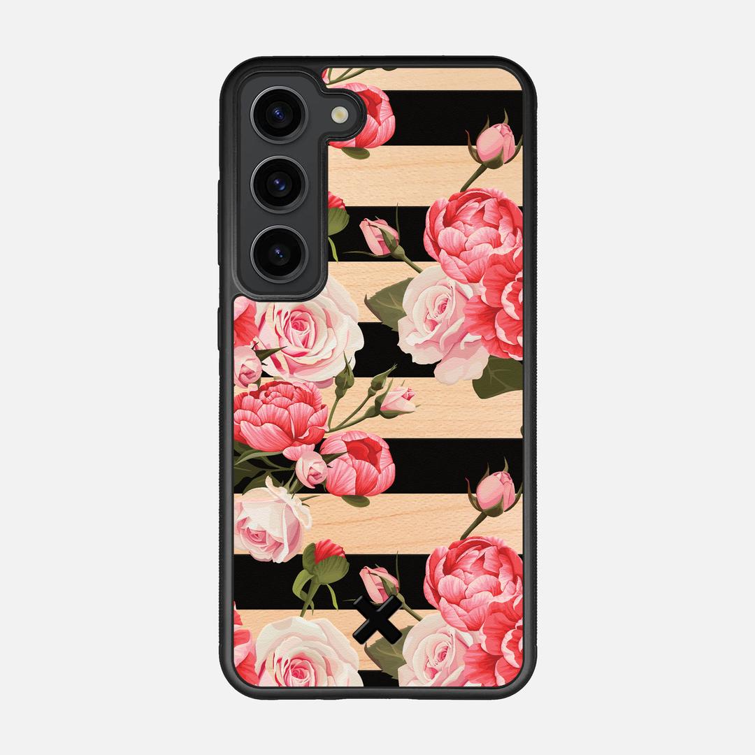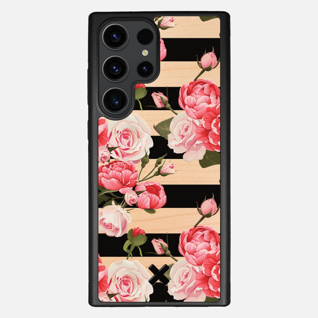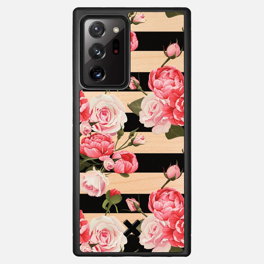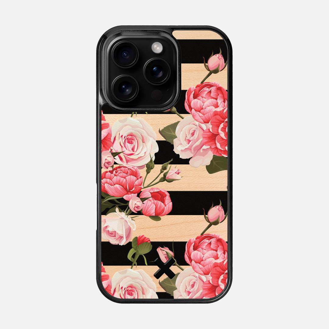 Styles trends come and go, but floral patterns are forever. The Peony blends timeless florals and symmetrical black and "white" design in this wood phone case, showcasing both the vibrant pinks, greens and matte black of the UV print and the pale grain of a Maple backer.