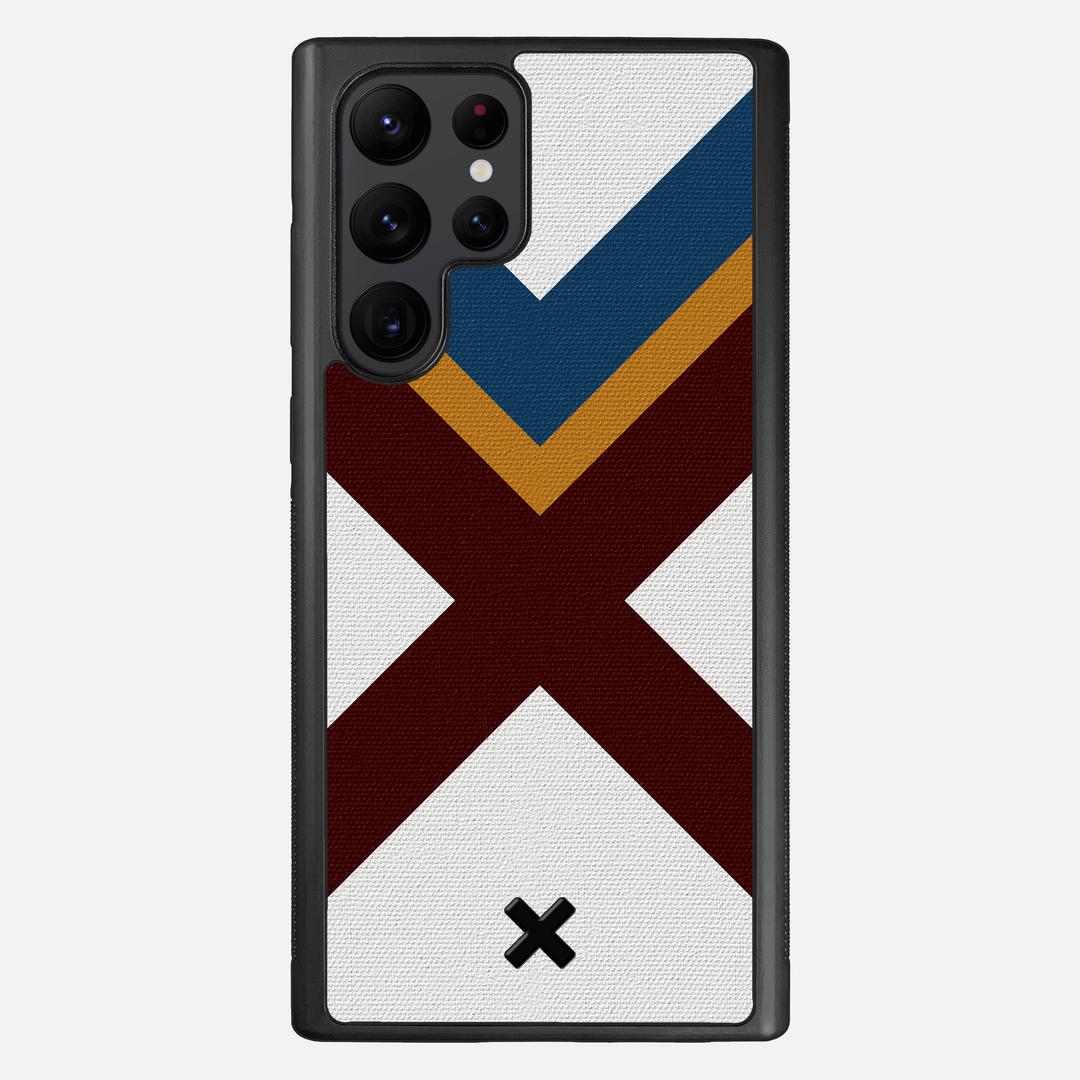 The Range is part of our Wayfinder Series of canvas phone cases, featuring a brightly printed crimson X to mark the spot, accented by yellow and blue lines on a white backer. Inspired by vintage flags and maritime navigation pennants, the collection lets you to pick your own adventure marker and get out exploring the world.