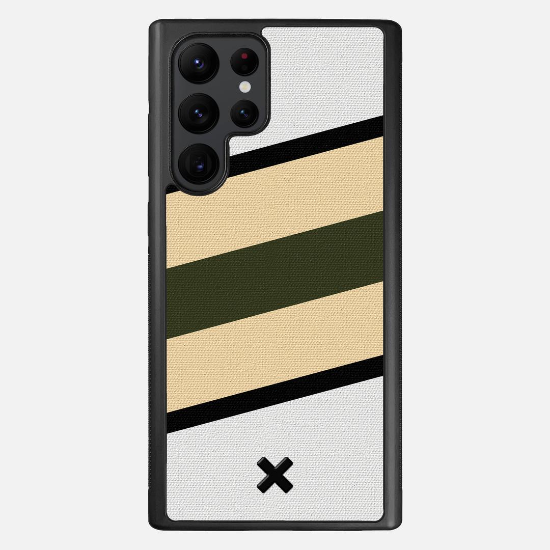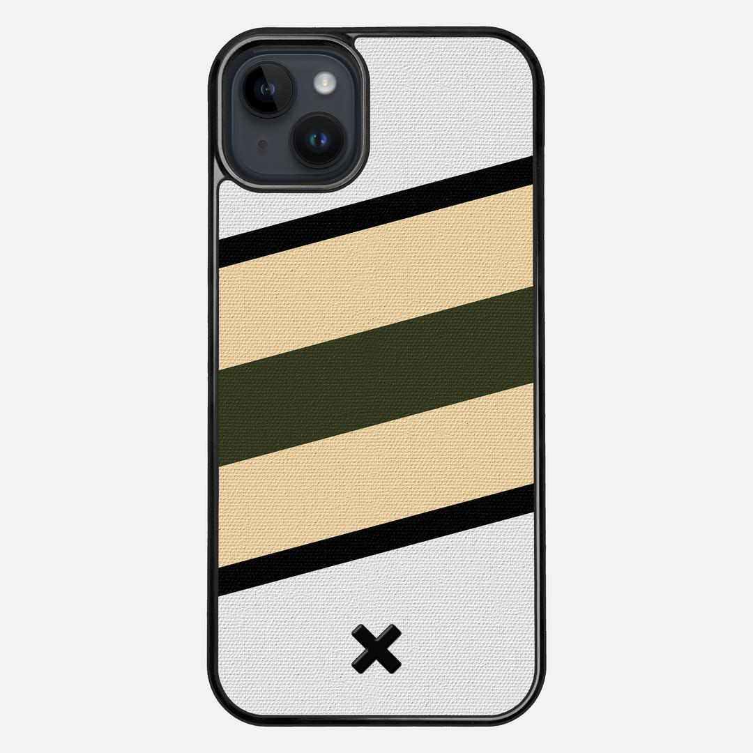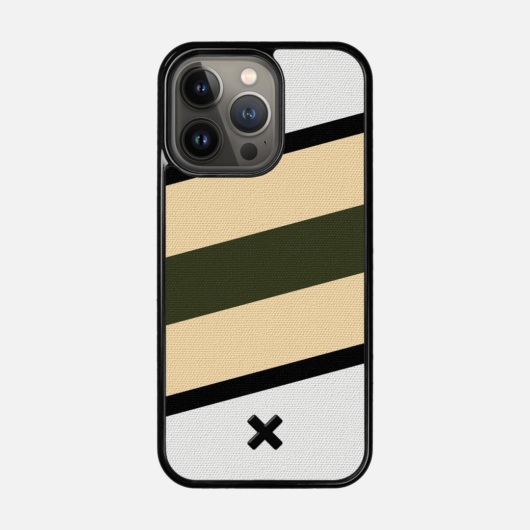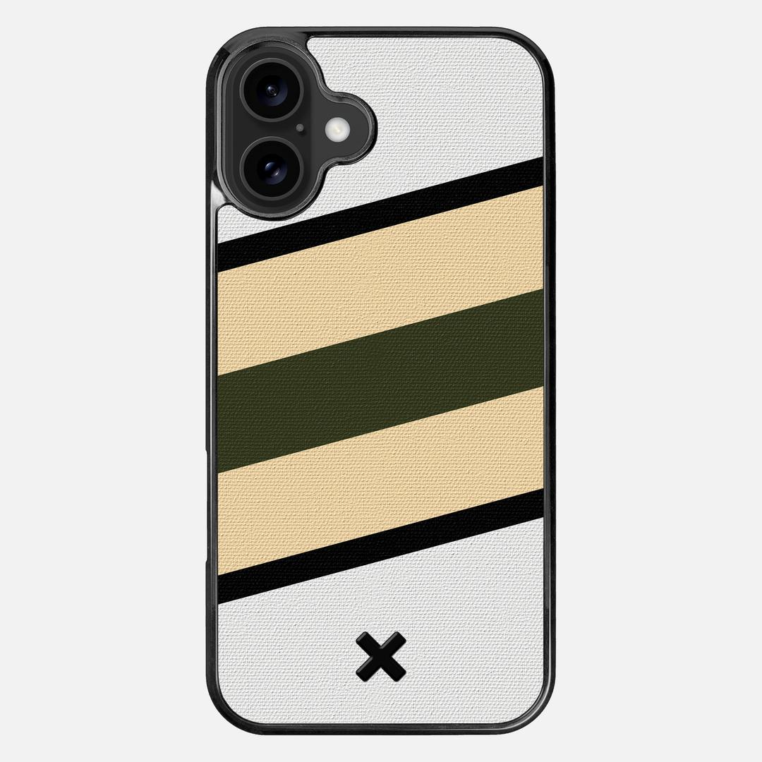 The Ridge is part of our Wayfinder Series of canvas phone cases, featuring brightly printed angles of green and beige, separated from the white backer by thin lines of black. Inspired by vintage flags and maritime navigation pennants, the collection lets you to pick your own adventure marker and get out exploring the world.