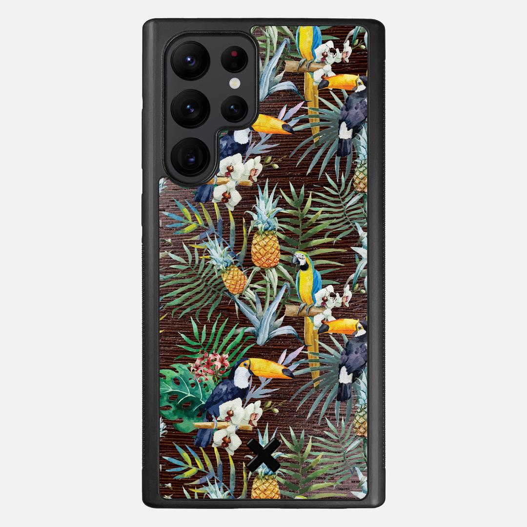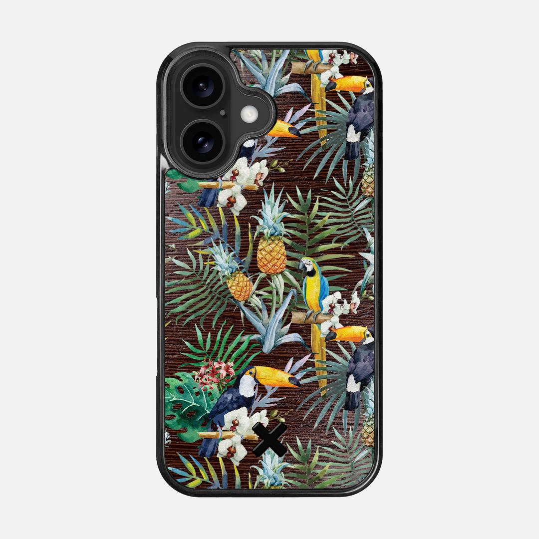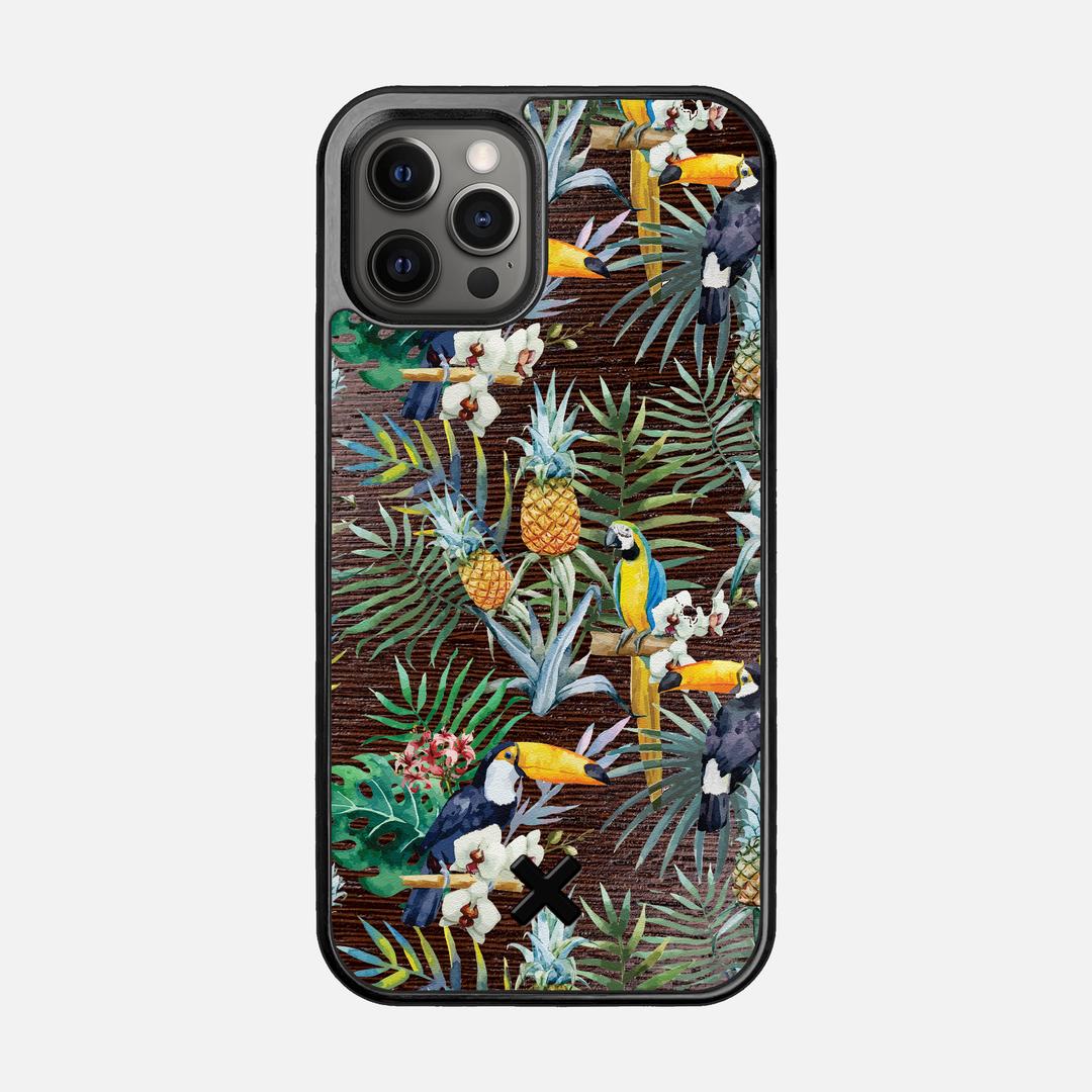 Bright and playful prints are fun all year round, not just on summer t-shirts! The Tropic speaks to the traveler in all of us, bringing a splash of vacation fashion to this wood phone case featuring a vibrant pattern of Toucans, Macaws, pineapples and tropical leaves printed on a Wenge wood backer.