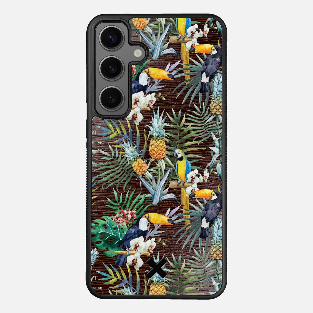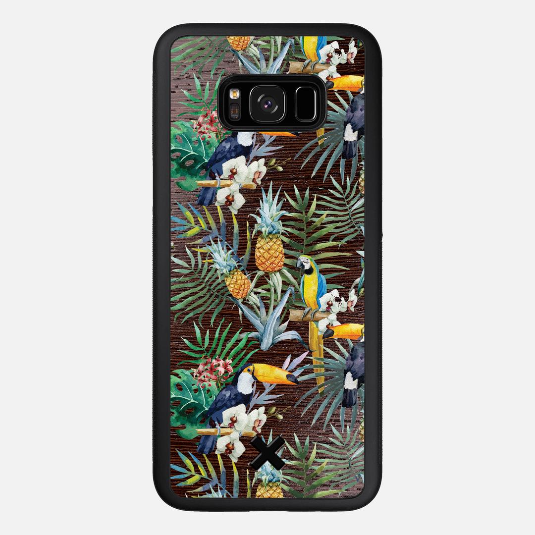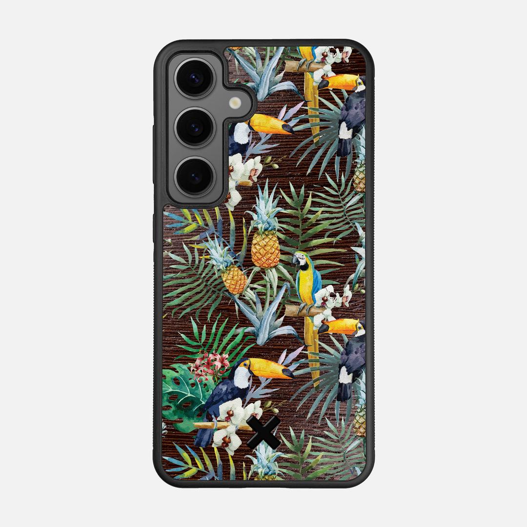 Bright and playful prints are fun all year round, not just on summer t-shirts! The Tropic speaks to the traveler in all of us, bringing a splash of vacation fashion to this wood phone case featuring a vibrant pattern of Toucans, Macaws, pineapples and tropical leaves printed on a Wenge wood backer.